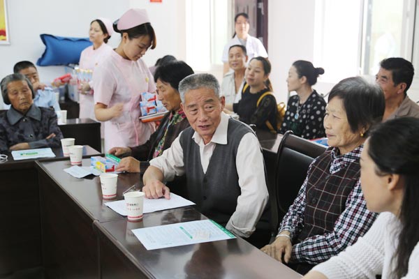 內(nèi)科主任駱淵紅為老年朋友講解高血壓、糖尿病的防治知識