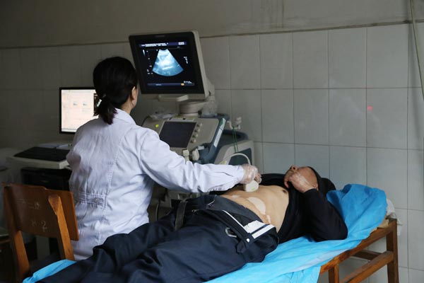 功能科醫(yī)師簡金艷為老人做彩超肝膽脾檢查